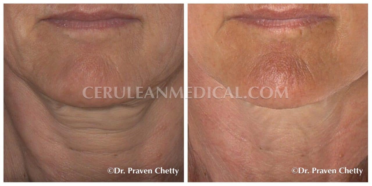 Skin tightening to the submentum and neck areas resulting in reduction of submental fullness